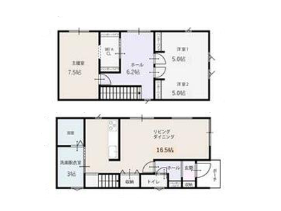 | 設備 | ウォークインクローゼット、エアコン2台、シューズインクローゼット、クローゼット、床下収納、モニター付インターホン、カードキー、ディンプルキー、ダブルロックドア、省エネ給湯器、全居室フローリング、上水道、下水道、プロパンガス、電気、庭、人感センサー付照明、ダウンライト、照明器具、火災警報器(報知機)、複層ガラス | ||