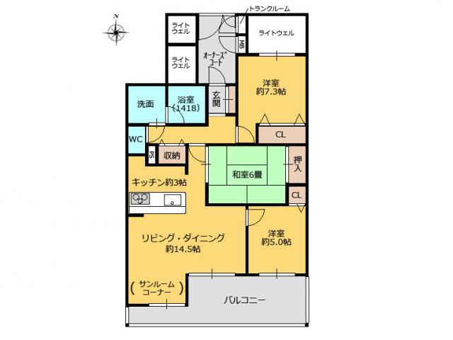 | 設備 | ・食器洗浄機・浴室暖房乾燥機・2重サッシ・シャワー付洗面化粧台・温水洗浄便座・エアコン2台・モニタ付きインターホン・トランクルーム・公営水道・公共下水・都市ガス | ||